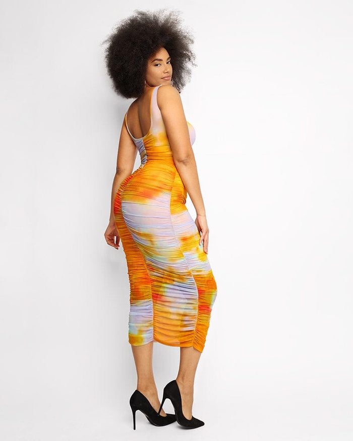 Embrace Your Curves: Shapellx Miami Sunset Mesh Pleated Bodycon Dress